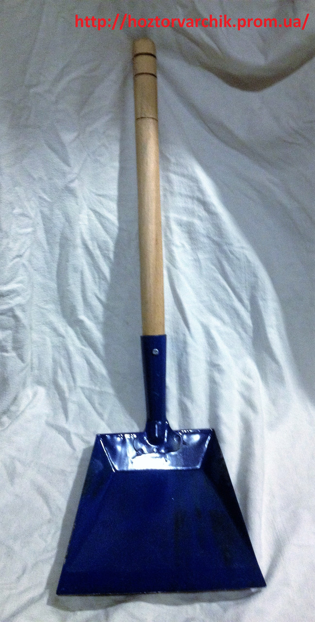 Совок для сміття металевий з довгою загостреною дерев'яною ручкою.